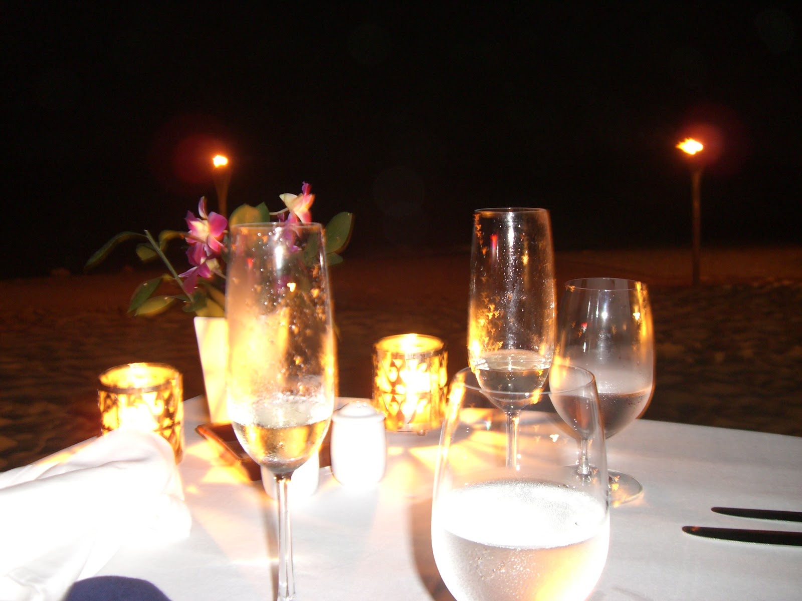 | Nossa mesa, na areia da praia em Phu Quoc (lembrei!) no Vietnam |