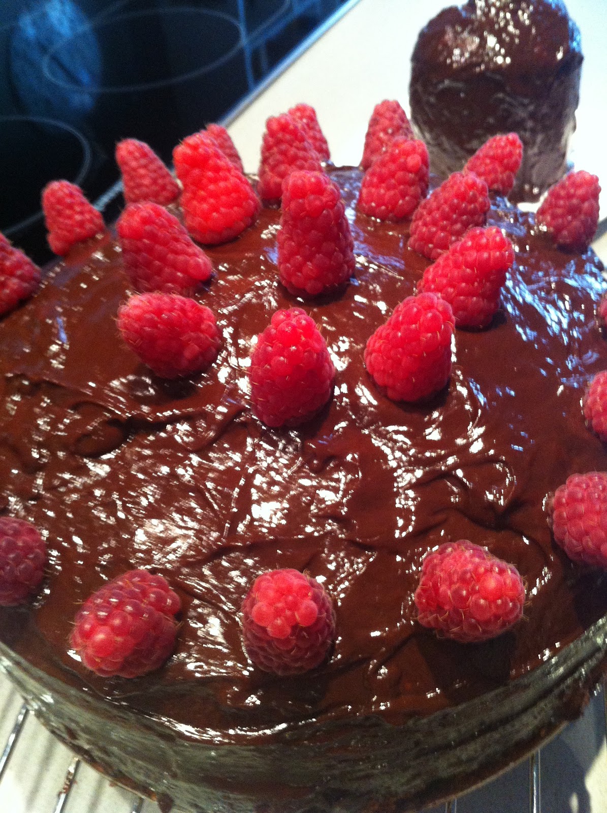 Talvez essa felicidade toda também tenha a ver com a quantidade de chocolate que comi ontem, que foi, digamos assim, massiva. O bolo ficou uma delícia, fiz de prestígio e decorei com framboesa – não fazia parte da receita, mas elas estavam na prateleira do mercado, deram uma piscadinha para mim e eu as trouxe para casa. Achei que combinou. Ficou chique.