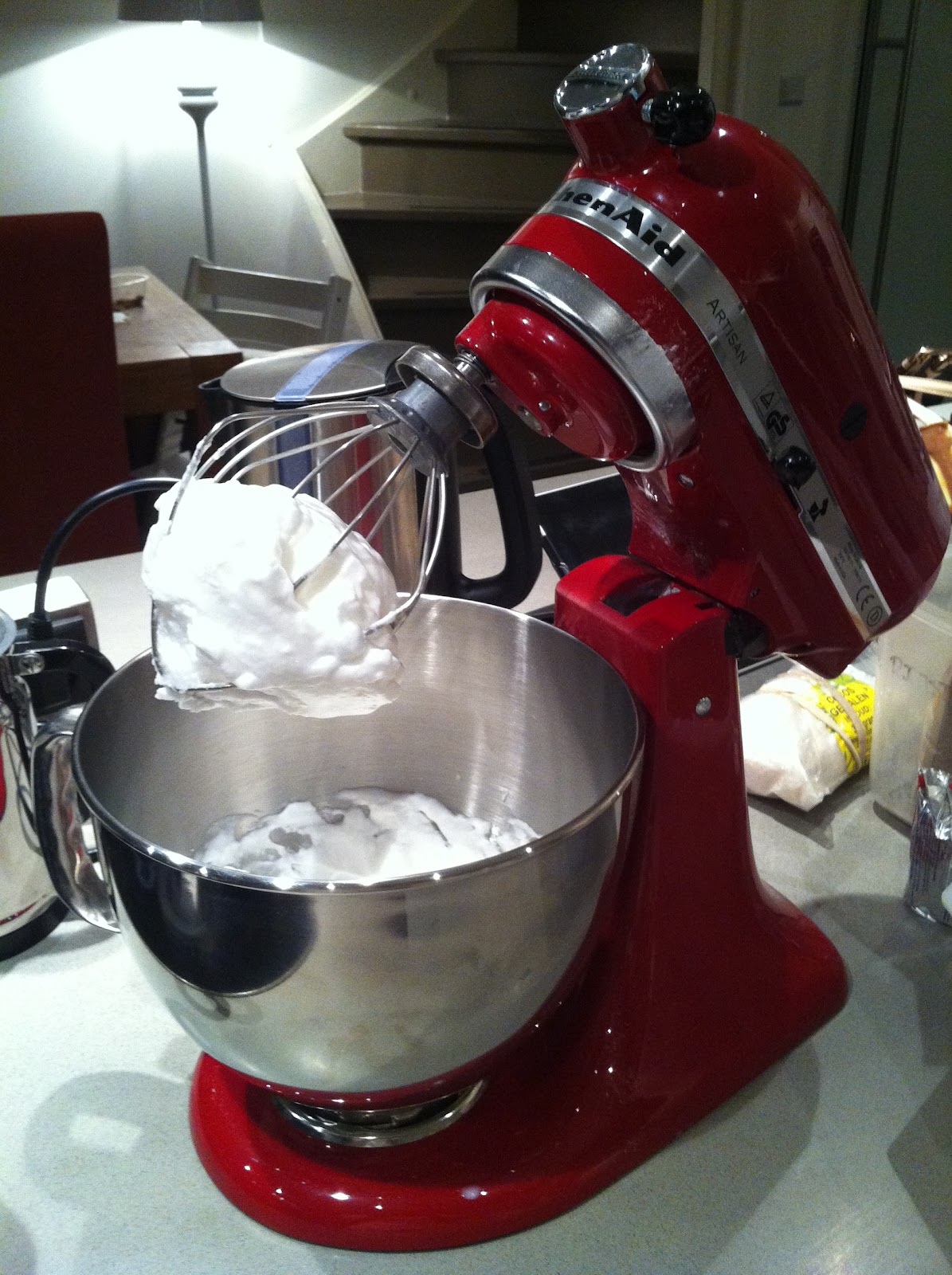 | Depois as claras em neve, que ficaram mais parecidas com uma bola de neve |