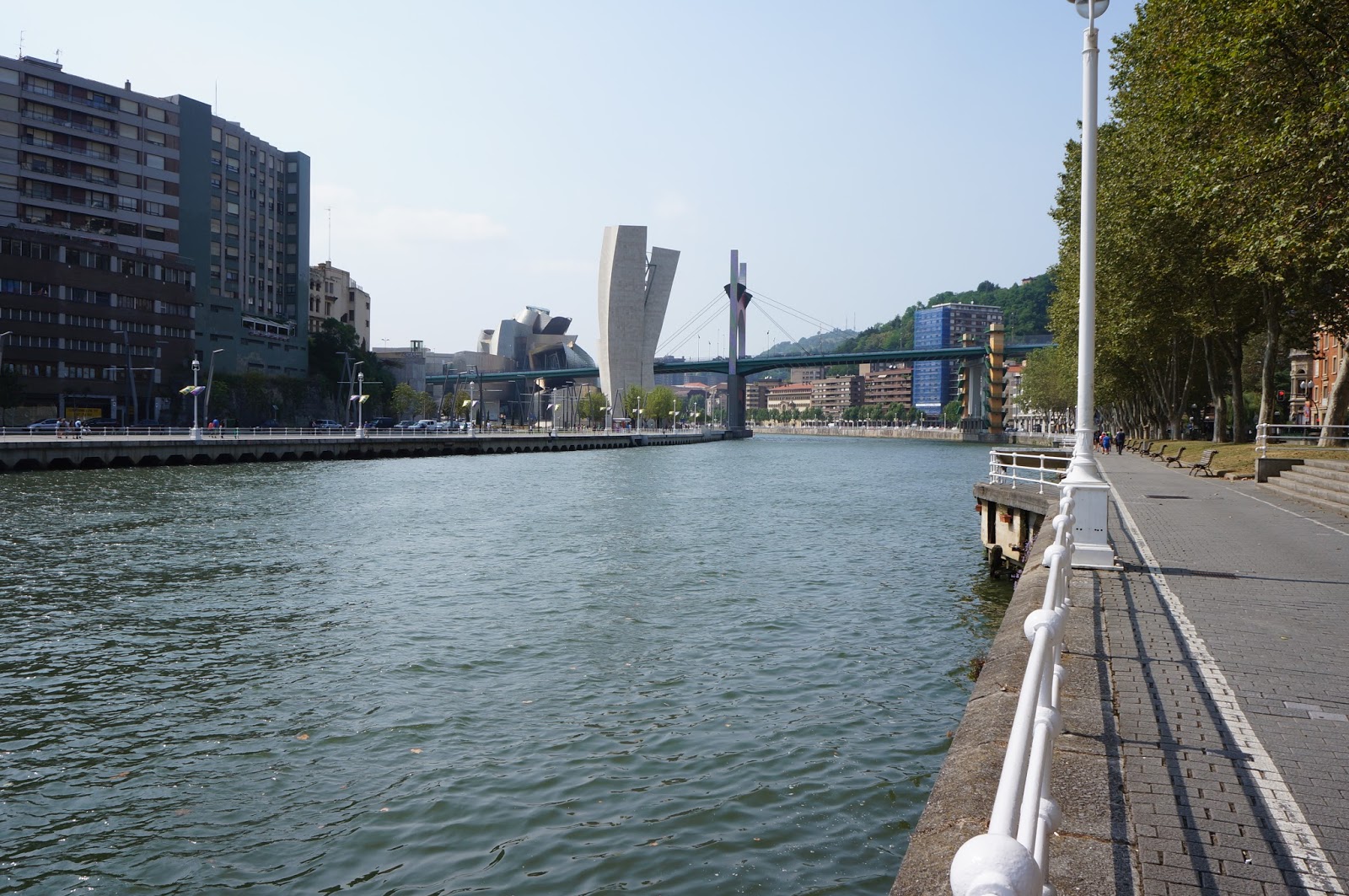 Bilbao um lugar onde o moderno e o antigo se encontram. Há esculturas